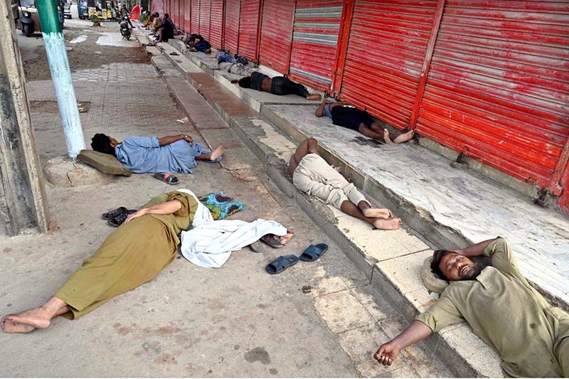 A large number of labourers sleeping in front of shops at Furniture Market