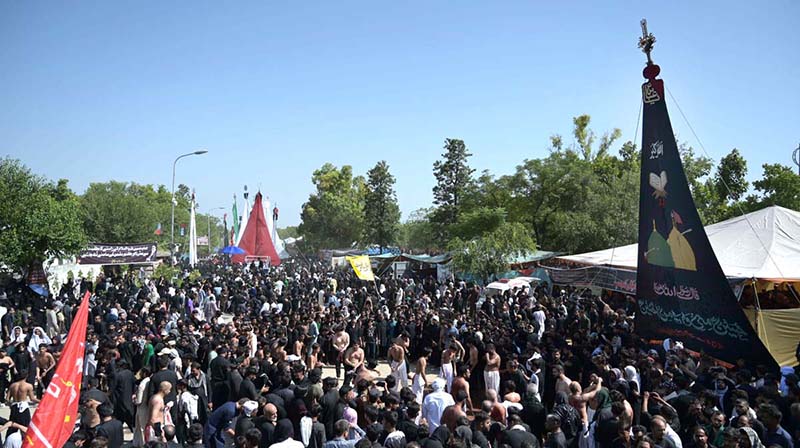 ISLAMABAD: July 16 – A large number of mourners attending main procession on 9th of Muharramul Haram at G-6. Muharramul Harram known as the first month of the Islamic calendar and the mourning month in remembrance of the martyrdom (Shahadat) of Hazrat Imam Hussain (RA), the grandson of the Holy Prophet Mohammad (PBUH).