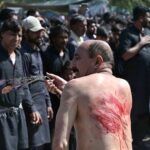 ISLAMABAD: July 16 – Mourners oozing themselves with knives and chains during main procession on 9th Muharramul Haram at G-6. Muharramul Harram known as the first month of the Islamic calendar and the mourning month in remembrance of the martyrdom (Shahadat) of Hazrat Imam Hussain (RA), the grandson of the Holy Prophet Mohammad (PBUH).