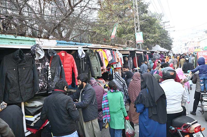 A large number of people busy selecting and purchasing warm clothes from vendors in Provincial Capital.
