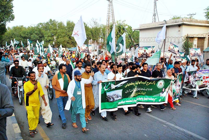 BAHAWALPUR: May 11 – A large number of people participate in a rally organized to celebrate Thanksgiving Day, expressing solidarity with the Pakistan Armed Forces following the successful military operation ‘Bunyan Marsous’ against India. APP/HBR/TZD