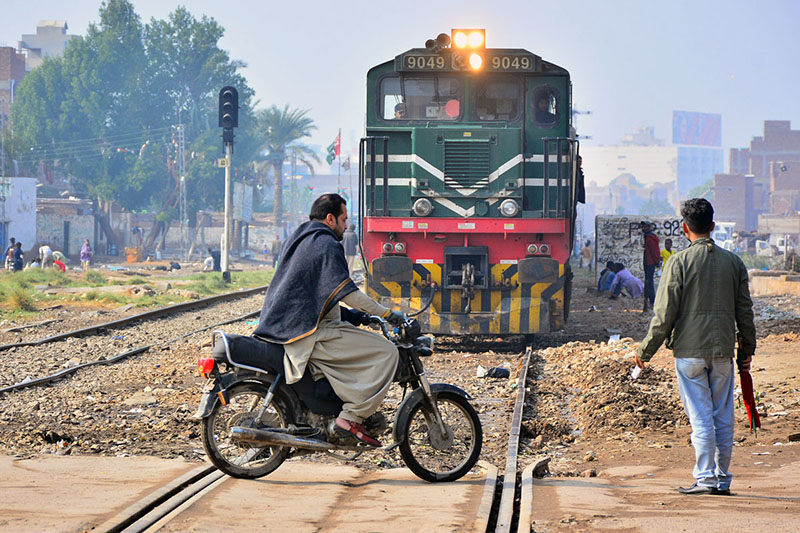 HYDERABAD: January 01 β A motorcyclist crossing railway tracks while train approaching on the same track near Railway Station may cause any mishap and needs the attention of concerned authorities. APP/FHN/MAF/TZD