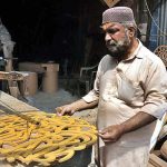 A person busy in spreading rice crop for drying purpose at Ghala Mandi.