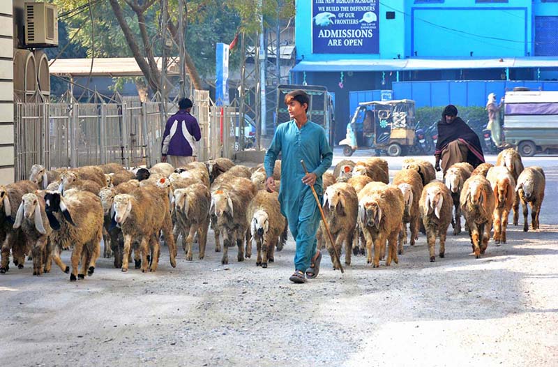 A shepherd guarding herd of sheep heading towards the grazing field at Latifabad. APP09-160125HYDERABAD: January 16 – Previous Post Drug-peddler arrested Next Post A heap of garbage spread on road at Lehtrar Road creating environment problems and needs the attention of concerned authorities.