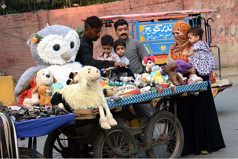 LAHORE: June 18 – Vendors are displaying and selling used toys on their handcart at roadside setup near Mayo Hospital. APP/AHF/TZD/FHAAPP43-180623