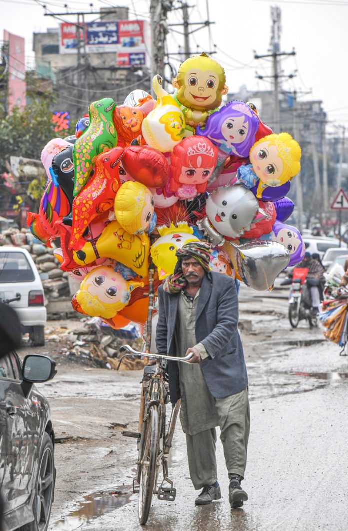 HomePhotosPhoto FeatureA street vendor tries to earn bread and butter for his family... PhotosPhoto Feature A street vendor tries to earn bread and butter for his family by pushing his bicycle laden with colorful balloons through rain-soaked streets. Share FacebookTwitterPinterestWhatsApp APP12-100226 ISLAMABAD: February 10 - A street vendor tries to earn bread and butter for his family by pushing his bicycle laden with colorful balloons through rain-soaked streets. APP/ADZ/MAF/TZD/SSH 32 APP12-100226ISLAMABAD: February 10 – Share FacebookTwitterPinterestWhatsApp RELATED ARTICLES General Coverage Photos Regional Director for Asia and the Pacific, UN-Habitat, Ms. Kazuko Ishigaki called on Federal Minister for Housing & Works Mian Riaz Hussain Pirzada. Tue, 10 Feb 2026, 6:26 PM Photos A view of the hockey match between DG Khan and Faisalabad teams during the 3rd Chief of Army Staff National Inter-Club Hockey Championship, organized... Tue, 10 Feb 2026, 6:25 PM Photo Feature Chairman Senate Syed Yousuf Raza Gilani in a meeting with H.E. Mr. Saqr Ghobash, Speaker of the Federal National Council (UAE). Tue, 10 Feb 2026, 6:25 PM Most Popular Regional Director for Asia and the Pacific, UN-Habitat, Ms. Kazuko Ishigaki called on Federal Minister for Housing & Works Mian Riaz Hussain Pirzada. Tue, 10 Feb 2026, 6:26 PM A view of the hockey match between DG Khan and Faisalabad teams during the 3rd Chief of Army Staff National Inter-Club Hockey Championship, organized... Tue, 10 Feb 2026, 6:25 PM Chairman Senate Syed Yousuf Raza Gilani in a meeting with H.E. Mr. Saqr Ghobash, Speaker of the Federal National Council (UAE). Tue, 10 Feb 2026, 6:25 PM Students participate in a tug of war competition during the Annual Sports Festival at GCWUF. Tue, 10 Feb 2026, 6:25 PM Load more