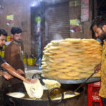 A vender displaying oranges on his push cart setup at Sachal Colony Road. APP10-220325LARKANA: March 22 – Previous Post An old worker busy in polishing pots at his workplace near Bandar Road. Next Post Workers busy making traditional vermicelli (Pheoni) to meet the rising demand ahead of Eid al-Fitr.