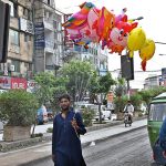 A vendor arranging and displaying seasonal fruits to attract the customers at his setup along Muree Road. APP01-180825RAWALPINDI: August 18 – Previous Post Students travelling on rooftop of passenger bus at Tralai may cause any misshape and needs the attention of concerned authorities. Next Post A vendor shuttles through Commercial Market, displaying balloons of various shapes to attract the customers.