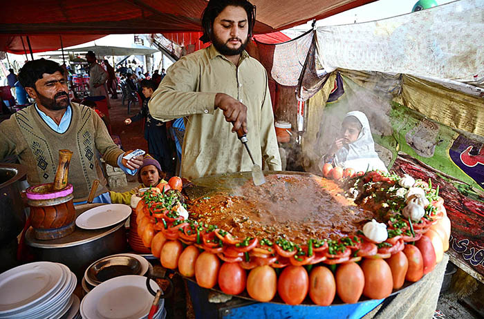 A vendor busy in frying ‘Tawa Kaleji’ for customers at his roadside setup.