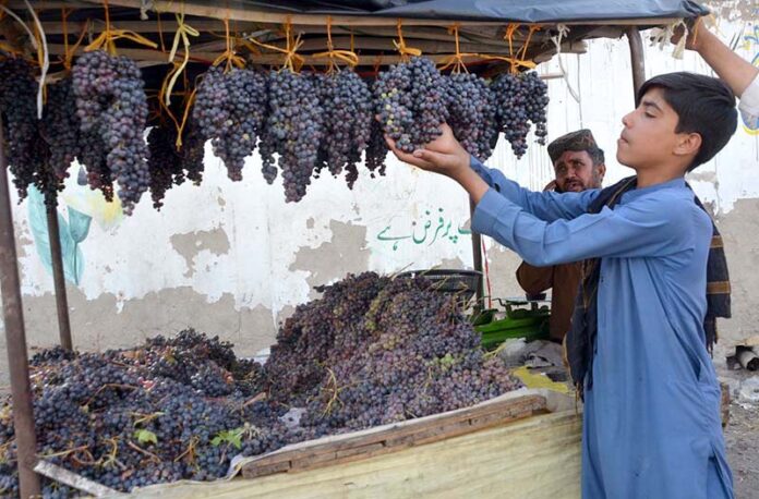 A vendor patiently waits for customers on the roadside in the city, selling antioxidant-rich black grapes known for their health benefits.