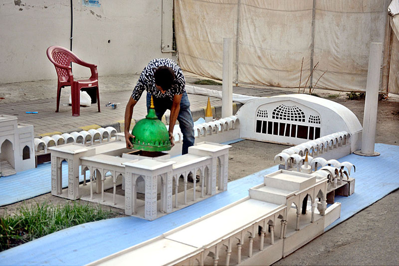 A vendor preparing Masjid Model in connection with Eid Milad-un-Nabi (PBUH)