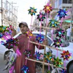 A vendor selling sweet (pheneain) on his roadside setup at Muslim Bazar. APP18-010424SARGODHA: April 01 – Previous Post An elderly vendor displaying the birds to attract the customers outside road at Latifabad. Next Post A vendor selling toys at Urdu bazar.