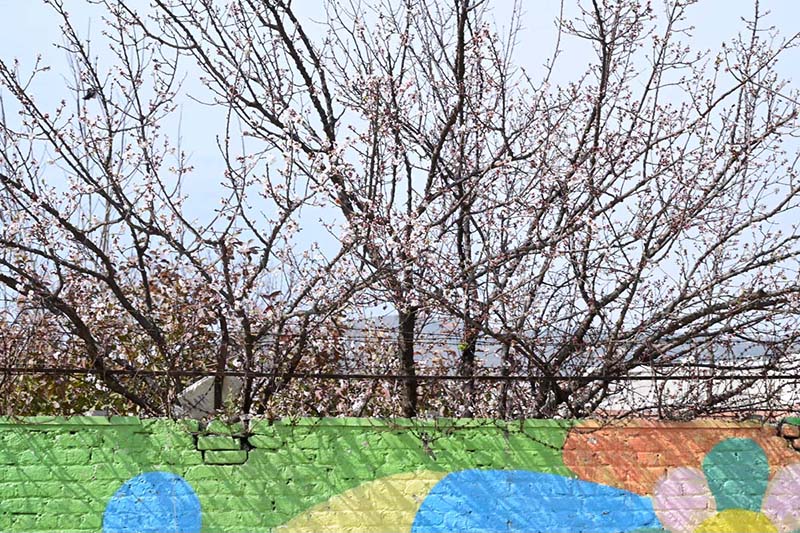 A view of flower buds flourishing on trees indicates the spring season in the city