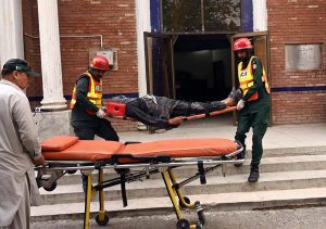 A view of joint mock exercises conducted by Rescue 1122, Civil Defense, Police, and STD to enhance preparedness for emergency situations