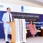 RAWALPINDI: July 29 – An auto rickshaw and people wade through rainwater accumulated on the road at Dhoke Khabba during heavy rain in the city.