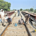KARACHI September 25: A view of the development work of Red Line is underway with the help of heavy machinery at University Road in the Provincial Capital.