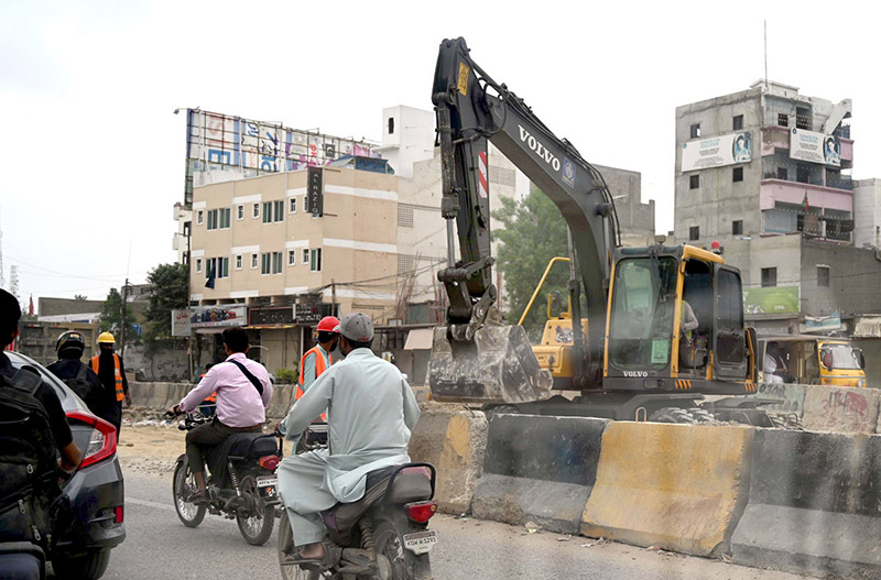 KARACHI: September 20 β A view of the development work of Red Line is underway with the help of heavy machinery at University Road in the Provincial Capital.