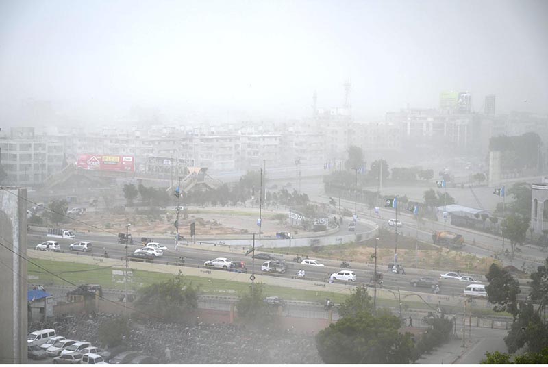 A view of the dust storm blanketing the provincial capital city. APP46-101024KARACHI – October 10: Previous Post Fazal for taking concrete steps for investment-friendly atmosphere Next Post A man weighing pieces of timber wood for sale to customers at a timber store in the city.