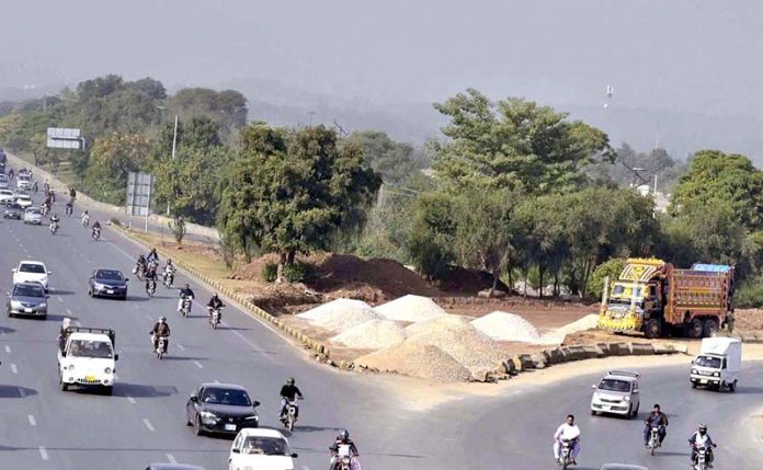 A view of the ongoing expansion work on the Faizabad Interchange in the Federal Capital.