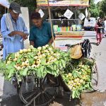 A view of the Revenue Department building illuminated with colorful lights on the upcoming occasion of Independence Day celebrations. APP13-110825Hyderabad: August 11 – Previous Post A street vendor sells fresh green guavas from his bicycle to a customer, tempting passersby at Shaheen Chowk. Next Post National flags installed on poles along Bypass Link Road in connection with the ‘Maarka-e-Haq’ Pakistan Independence Day celebrations.