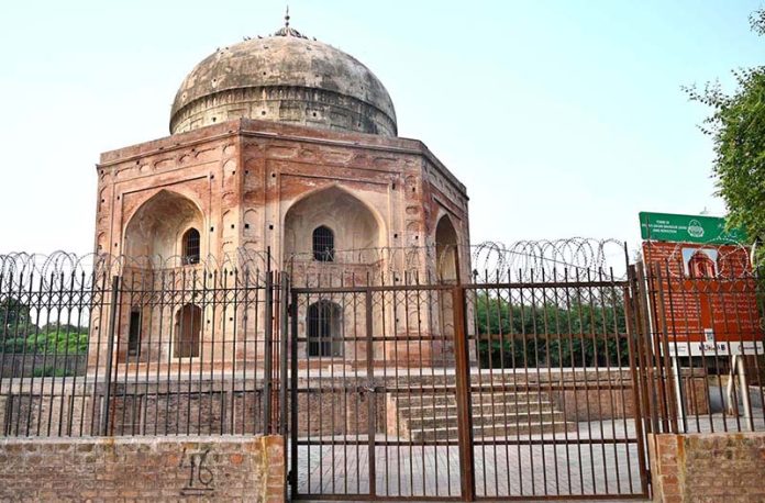A view of the tomb of Khan-e-Jahan Bahadur Zafar Jung Kokaltash, a Mughal Subehdar (Governor) of Lahore from 1691 to 1693. This 17th-century mausoleum, located in Mohalla Ganj, belongs to the governor who was dismissed from his office by Emperor Aurangzeb Alamgir in mid-1693. Khan-e-Jahan died four years later, on 23 November 1697, and was buried at this site.