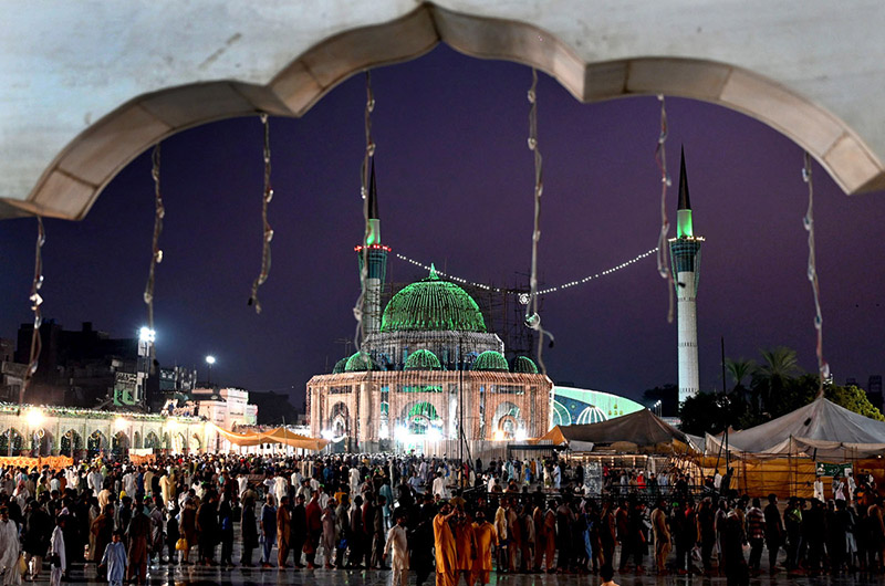 A well decorated view of Data Darbar with colorful lights in connection with 982 Urs of Data Ali Hajveri(RA) as a large number of people arrives to attend the three day Urs celebrations of renowned Sufi Data Gunj Buksh