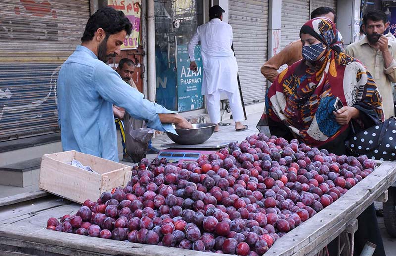 HomePhotosPhoto FeatureA woman buys Plums from a road side vendor