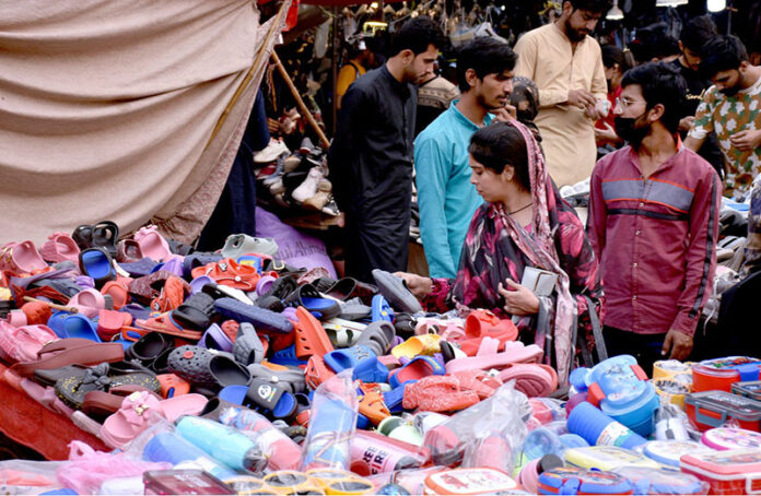 LAHORE: January 24- A woman selects shoes for herself and her children at an affordable second hand stall in Nolakha Linda Bazaar. APP/MHA/MAF/ABB/SSH