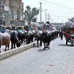 A worker busy in coloring tractor trolley at Central Jail Road. APP36-091025LARKANA: October 09 – Previous Post A herd of buffaloes wandering freely at Rice Canal Road creating hurdle in flow of traffic and needs the attention of concerned Authorities. Next Post 79 stolen phones recovered through E-Gadget
