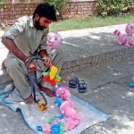 A worker busy in making wooden toy at his setup. APP14-120326BAHAWALPUR: March 12 – Previous Post A vendor fills air in toys using hand pump at his roadside setup. Next Post Anti-Corruption Department launches awareness campaign