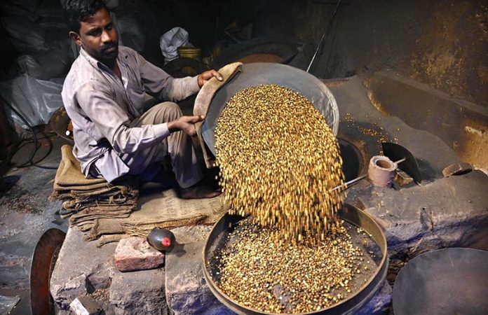 A worker busy in roasting grams for customers at his workplace in the Provincial Capital.