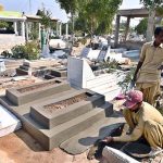 A worker is busy carving decorative patterns on a marble grave model at his work place. APP25-030226MULTAN: February 03 – Previous Post A worker paving a grave with cement in connection with Shab-e-Barat at Tando yosuf Graveyard. Next Post Chairperson Peace and Culture Organization Mushaal Hussein Mullick and Farah Naz Akbar, Parliamentary Secretary for Federal Education and Professional Training, lead a walk with students, while banners are displayed in connection with Kashmir Solidarity Day at the FG Institute of Home Economics, Arts and Design, F-11/1 Hilal Road.