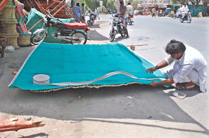 A worker is busy preparing traditional curtain (chick) at his roadside setup. APP26-290724BAHAWALPUR: July 29 – Previous Post Labourers busy in construction work of bridge on the Pinyari Canal. Next Post Senator Samina Mumtaz Zehri, Chairperson Senate Functional Committee on Human Rights presiding over a meeting of the committee at Parliament Lodges.