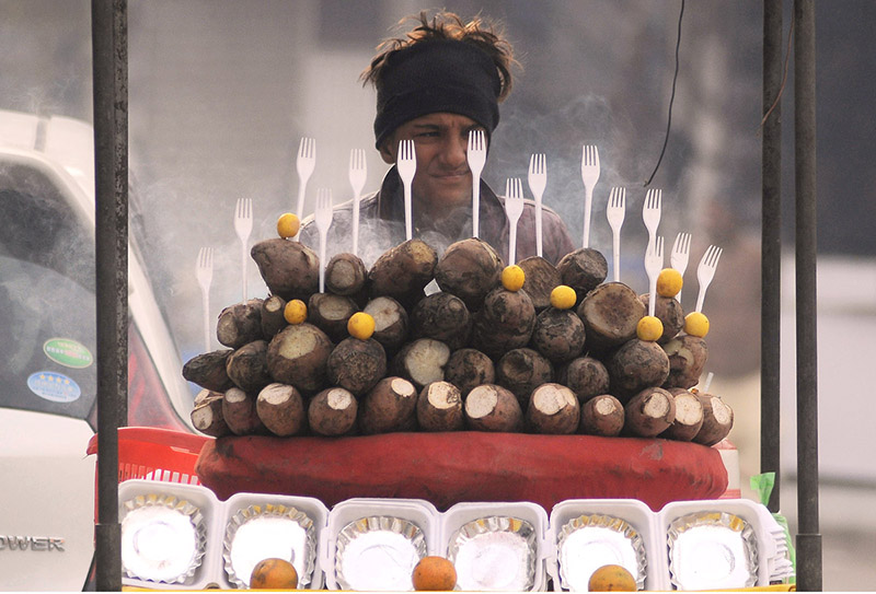HomePhotosPhoto FeatureA young vendor selling charcoal-roasted sweet potatoes to attract customers at his...