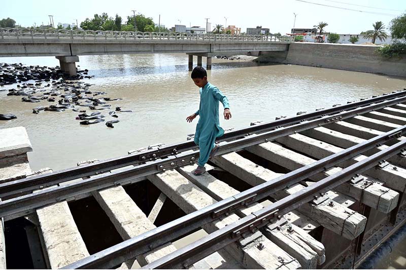 HomePhotosPhoto FeatureA youngster crossing the railway bridge near Nazar Muhalla