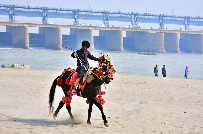 HomePhotosPhoto FeatureA youngster enjoying horse ride at the bank of Indus River.