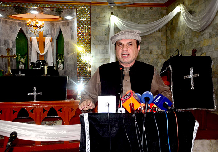 Acting Governor Balochistan Abdul Khaliq Achakzai addressing an event ‘Promoting Social Cohesion’ organized at Methodist Church.