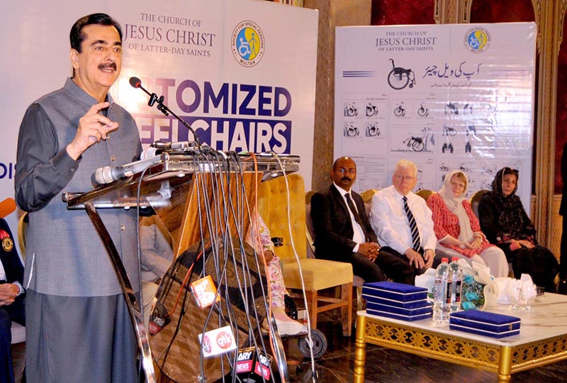 Acting President/Chairman Senate, Syed Yousaf Raza Gillani addressing a customized wheelchair distribution ceremony jointly organized by the Church of Jesus Christ of Latter day Saints and Society for Special Persons