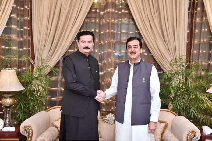 PESHAWAR: October 01 – Acting President Syed Yousuf Raza Gilani being received at the Governor House by Governor Khyber Pakhtunkhwa Faisal Karim Kundi. APP/TZD