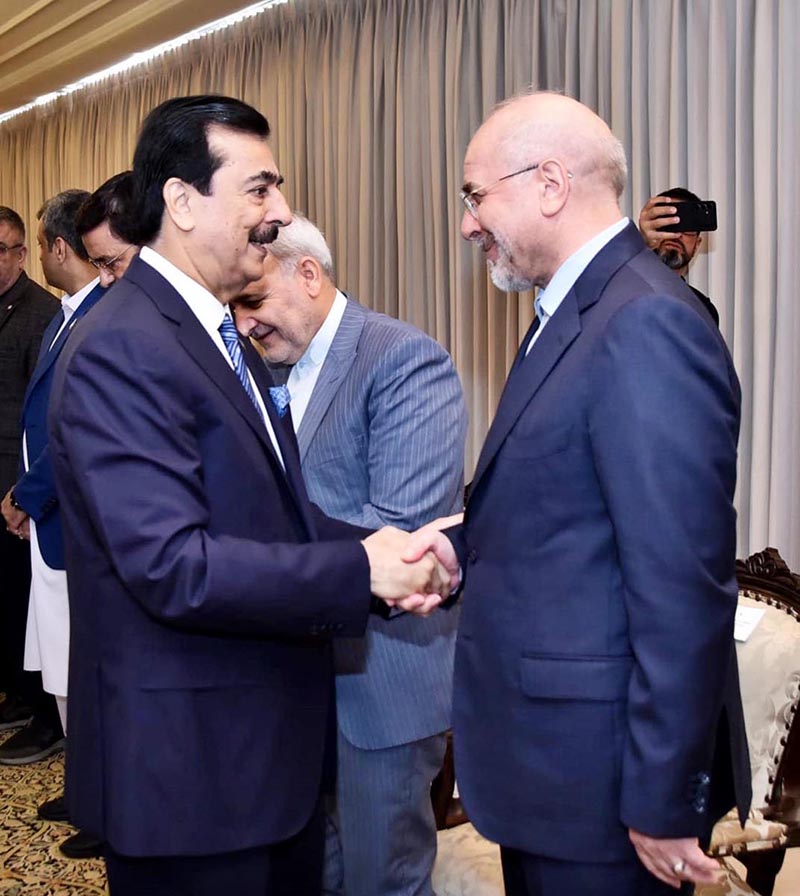 Acting President Syed Yousuf Raza Gilani shaking hands with H.E. Dr. Mohammad Bagher Ghalibaf, Speaker of the Islamic Consultative Assembly of Iran at Aiwan-e-Sadr