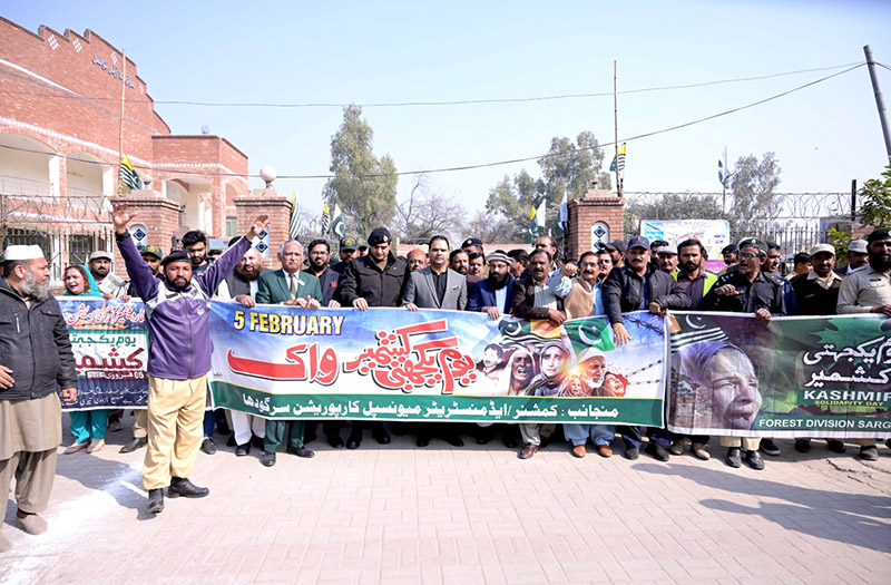 SARGODHA: February 05 – Additional Deputy Commissioner General Umar Farooq is leading the walk organized to express solidarity with the people of Indian Illegally Occupied Jammu and Kashmir (IIOJK) on the occasion of Kashmir Solidarity Day.