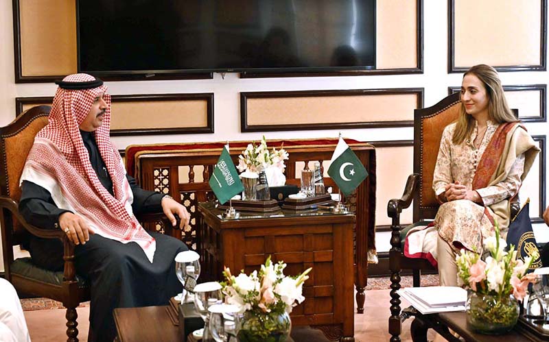 Advisor to the Chairman Senate and Ambassador to the Inter-Parliamentary Speakers Conference (ISC), Ms. Misbah Khar, holds a meeting with Dr. Mishaal Bin Fahm Al-Salmi, Vice Chairman of the Saudi Shura Council, during the Inter-Parliamentary Speakers Conference in the Federal Capital.