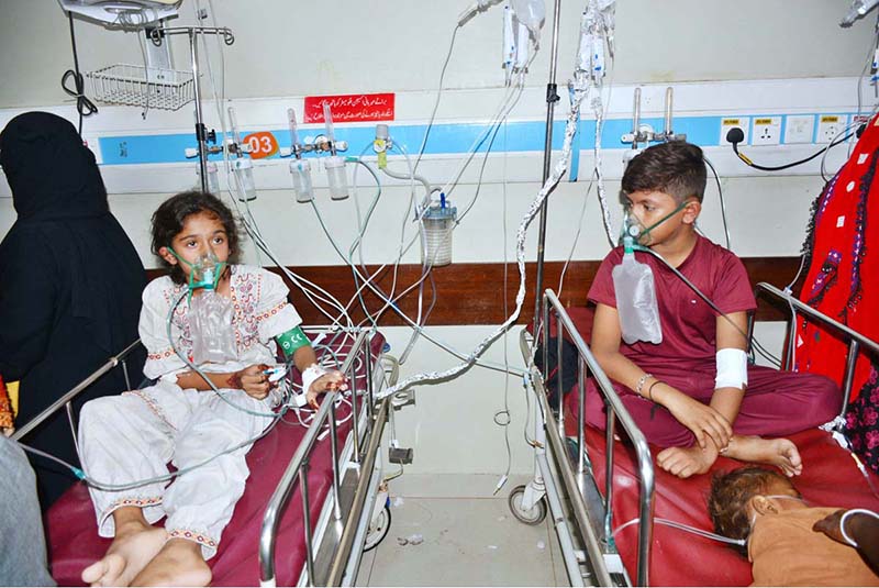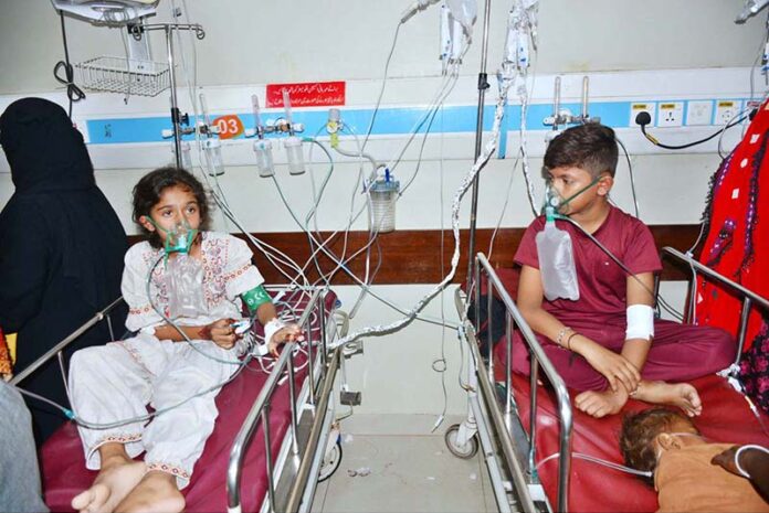 HYDERABAD: September 26 – Affected children are being given medical aid at civil hospital due to the gas leakage of the water filter plant at Khurshed Colony Hala Naka. APP/FHN/TZD/ABB