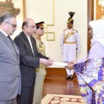 Ambassador-designate of Myanmar, Wunna Han presenting his diplomatic credentials to President Asif Ali Zardari at Aiwan-e-Sadr. APP29-150724ISLAMABAD: July 15 – Previous Post Ambassador-designate of Cambodia, Chea Sok presenting his diplomatic credentials to President Asif Ali Zardari at Aiwan-e-Sadr. Next Post The High Commissioner-designate of Rwanda, Ms. Harerimanu Fatou presenting her diplomatic credentials to President Asif Ali Zardari at Aiwan-e-Sadr.