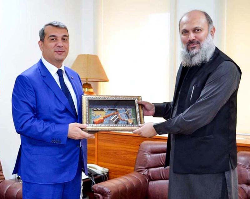 Ambassador Khazar Farhadov of Azerbaijan presents souvenir to Federal Commerce Minister Jam Kamal Khan. APP38-040424ISLAMABAD: April 04 – Previous Post British High Commissioner, Jane Marriott calls on Minister for Defence, Khawaja Muhammad Asif. Next Post Chairman Prime Minister’s Youth Programme Rana Mashhood Ahmad Khan addresses a press conference.