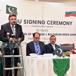 Ambassador of Bulgaria Irena Gancheva addresses the signing ceremony of a Memorandum of Understanding on news cooperation between Associated Press of Pakistan (APP) and Bulgarian News Agency (BTA). Secretary for Information and Broadcasting Ashfaq Khalil, Managing Director APP Muhammad Asim Khichi and Director General of BTA Kiril Valchev are present.