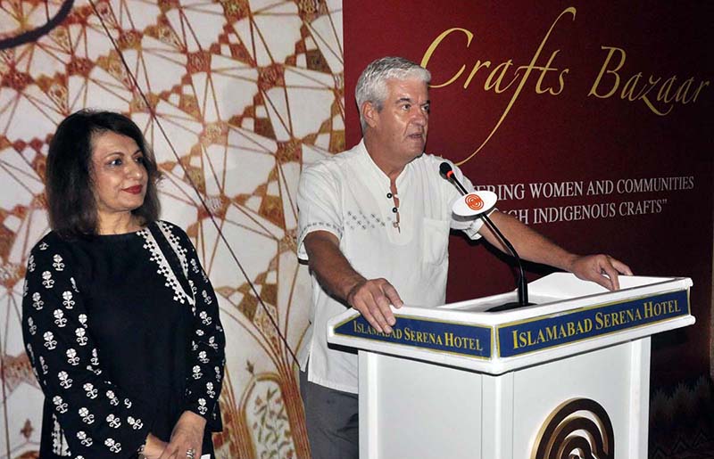 ISLAMABAD: September 09 - Ambassador of Portugal H.E. Frederico Silva addressing during Inaugural ceremony of Crafts Bazaar "Empowering women and communities through indigenous crafts" at local hotel. APP/SMR/FHA