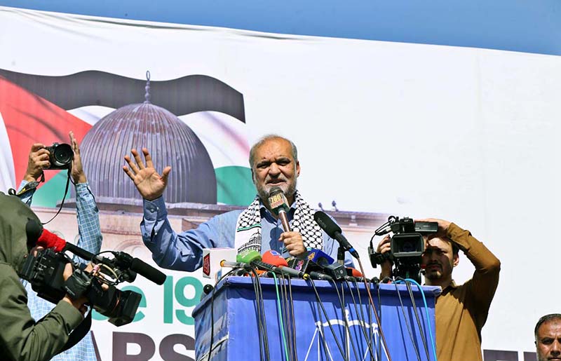 ISLAMABAD: October 09 – A large number of students participating in Gaza March organized by Jamat-e-Islami to express solidarity with the Palestinians at Faisal Avenue. APP/ADZ/TZD