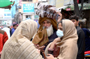 HomePhotosGeneral Coverage PhotosAn aged man selling Quran-Pak rehal to attract the customers during the...