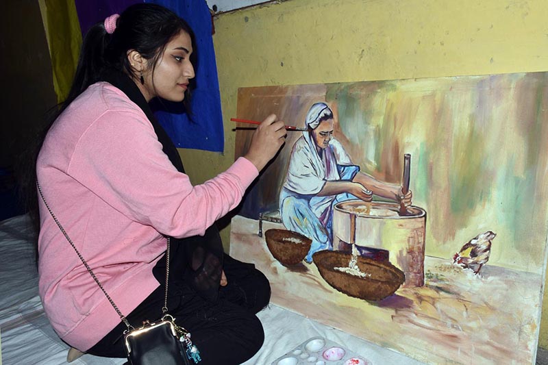 LAHORE: January 31– An art student participate to show her creativity in an arts and painting competition organized by the Knowledge of Art Academy at Ravi Road. APP/AHF/FHA/SSH